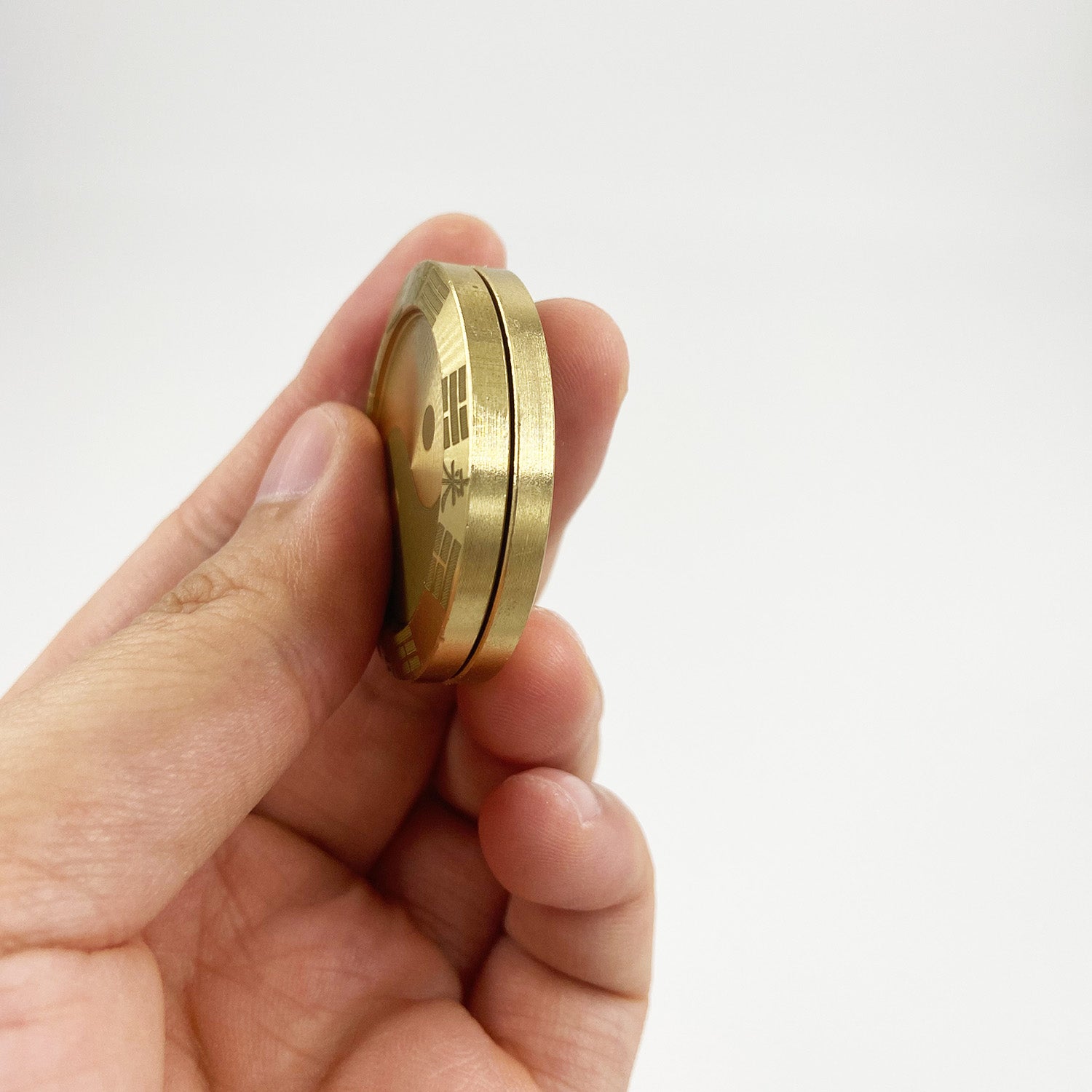 - Excellent fidget slider toy: This fidget slider coin is made by metal with copper cover. Play the coin with crisp metal impact sound and damping feedback.